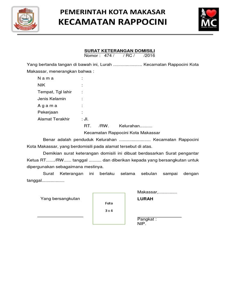 Contoh surat keterangan domisili makassar Surat Keterangan Domisili Makassar